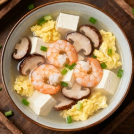 1.将鲜虾去头去虾线剥壳备用,菌菇类切片,如果是干货类菌菇需泡发、豆腐切块