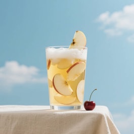 ➀杯中加入足量的冰块 ➁倒入半杯苹果汁 ➂缓慢地沿着杯壁倒入冰镇好的啤酒,轻搅融合 ➃在杯口插上苹果片或薄荷叶点缀即可