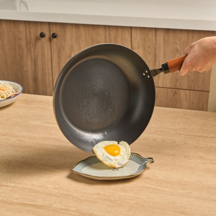 11IN Hammered Carbon Steel Pan Frying Pan with Beech Wooden Handle Glass Lid Packaging with Minor Flaws