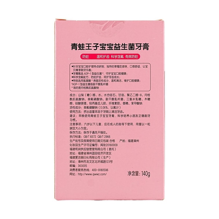 青蛙王子 益生菌牙膏 兒童牙膏刷牙 草莓奶昔口味 140g