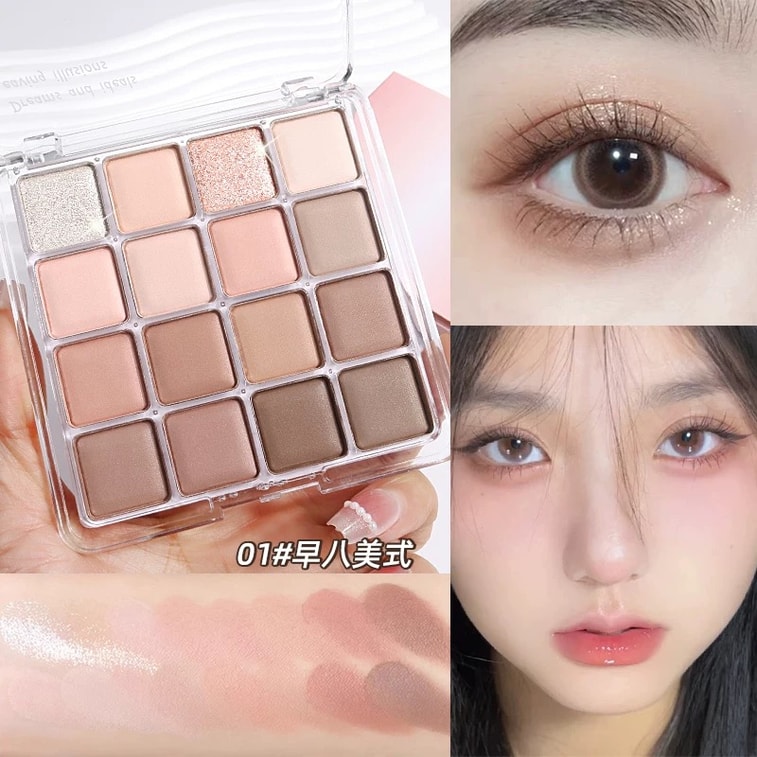 蕾西娜 16色眼影盤修容盤高光碟 【01色號 早八美式】15克 【粉質細膩 不飛粉】【低飽和棕色系 一盤搞定全臉妝容】