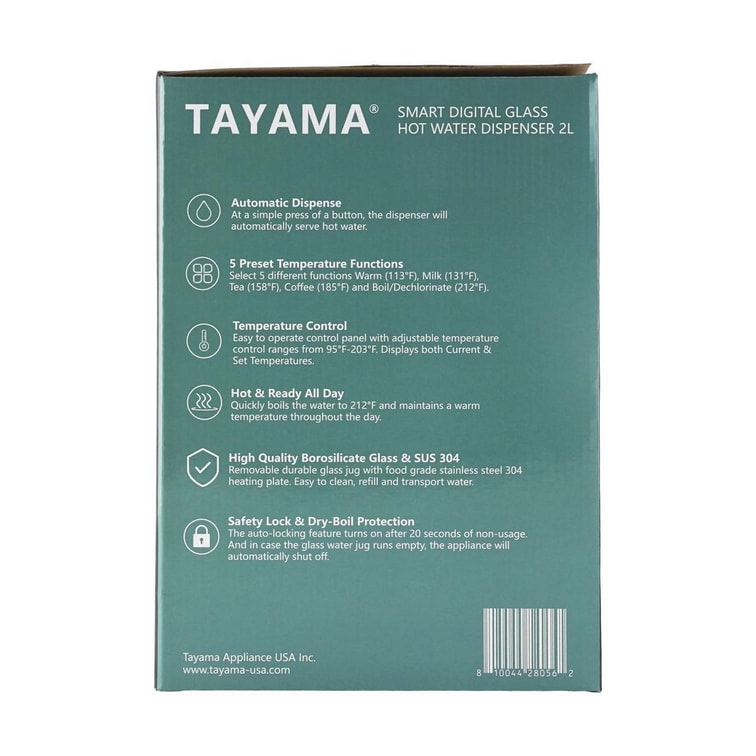 美國TAYAMA 智慧數位玻璃熱水器 即熱飲水機燒水壺 2.0L