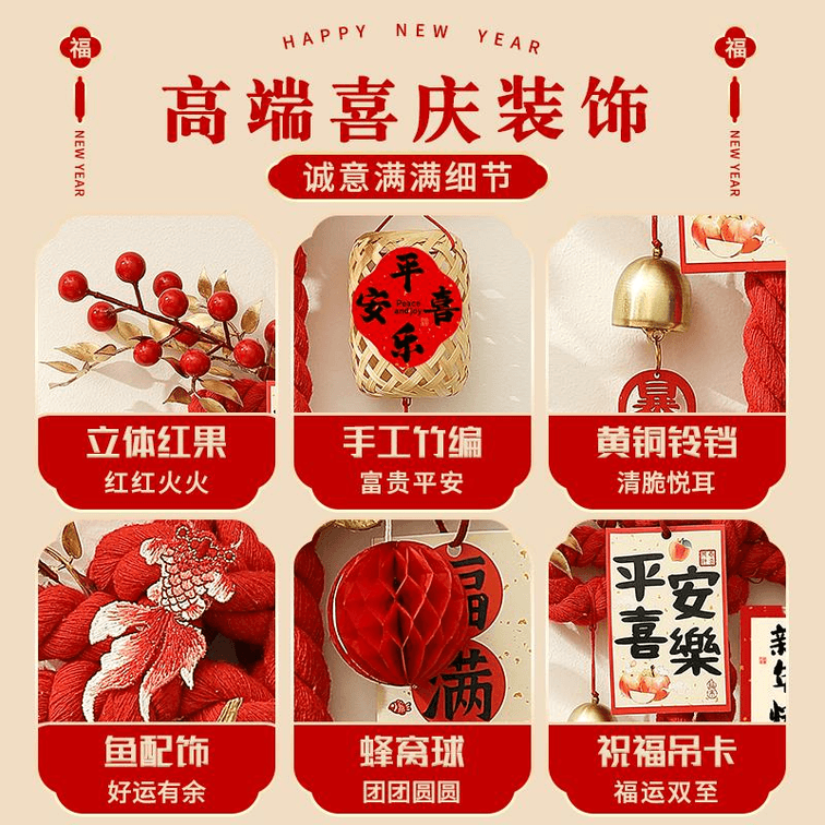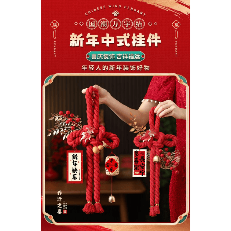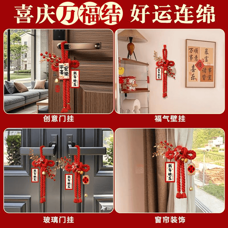 【中國直郵】2025新年裝飾品掛檔入戶門掛過年蛇年春節元旦氛圍場景佈置萬字結15cm*30cm1套