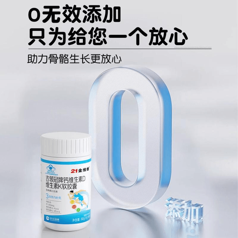 【中國直郵】 21金維他 兒童鈣片6到12歲以上鈣鐵鋅60片*1瓶裝