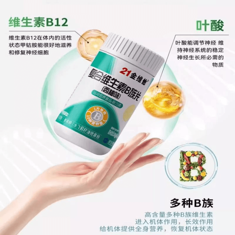 【中國直郵】 21金維他 複合維生素b族片新陳代謝提升60片*1瓶裝