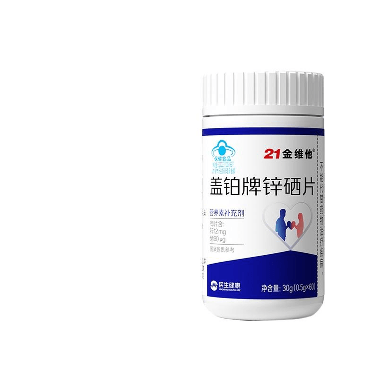 【中國直郵】 21金維他 鋅硒寶片活力提升精子品質備孕補鋅60片*1瓶裝