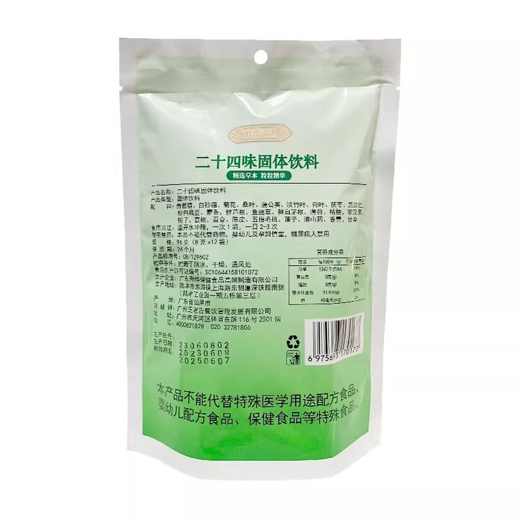 【中國直郵】 王老吉 二十四味涼茶 熬夜火鍋易上火?您的廣式滅火神器 顆粒沖劑 96g