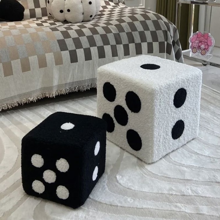 骰子換鞋凳子 板凳小沙發 創意家居擺件矮凳子 白色 大號 29*29*25cm