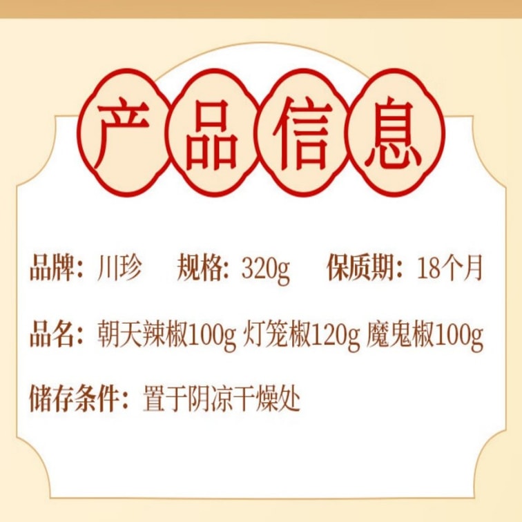 | 口味 | 川珍 乾辣椒組合320g |