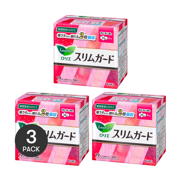 日本KAO花王 LAURIER樂而雅 S零觸感系列 無香型超薄日用衛生棉 2倍吸收超強保護 無螢光劑 250mm 19片入*3包【超值3包入】