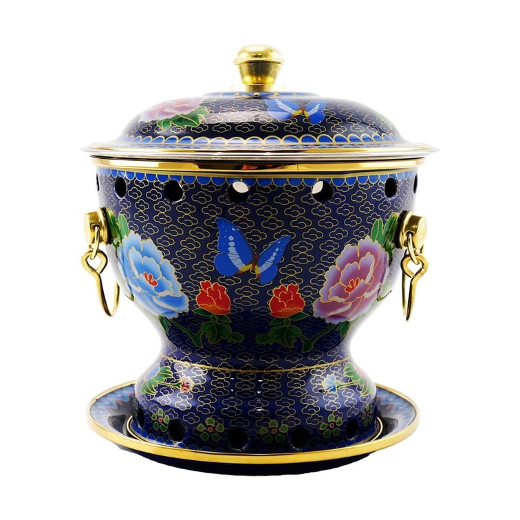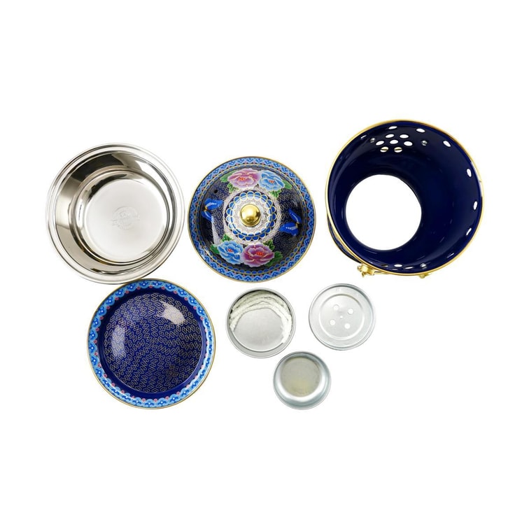 浴見你 琺瑯肥牛鍋 火鍋 藍底牡丹+304不鏽鋼內膽