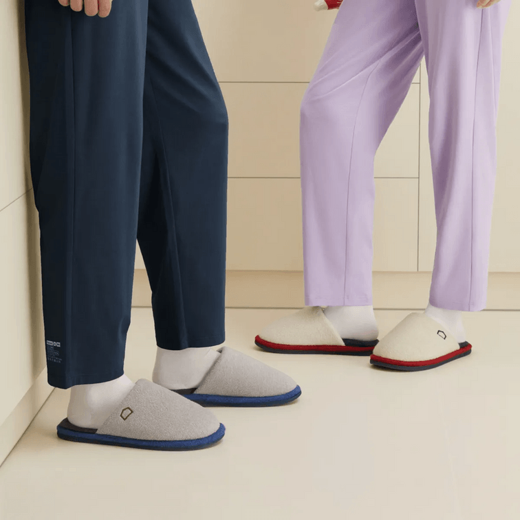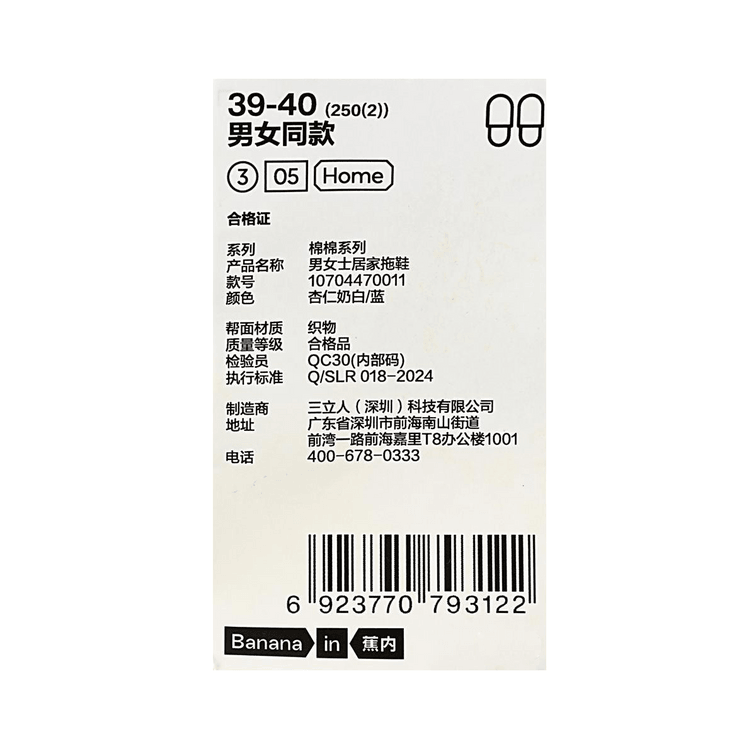 BANANAIN蕉內 棉棉305Home 男女同款毛圈撞色拖鞋 杏仁白/藍 39-40