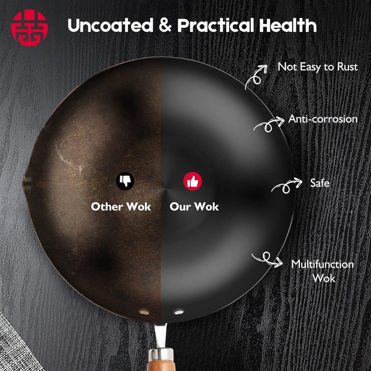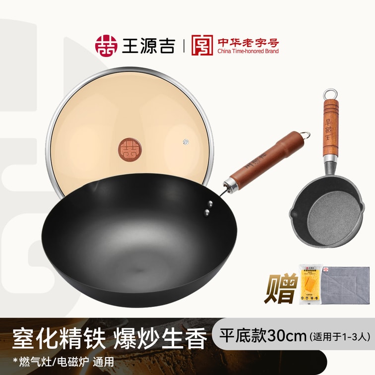 ⭐入門款⭐【爆炒鍋+潑油小鍋】王源吉 中式爆炒鍋 30cm 大口徑炒菜鍋 無塗層精鐵鍋 附鍋蓋 贈潑油小鍋13cm 燃氣電磁爐適用 (不易生鏽 無塗層)