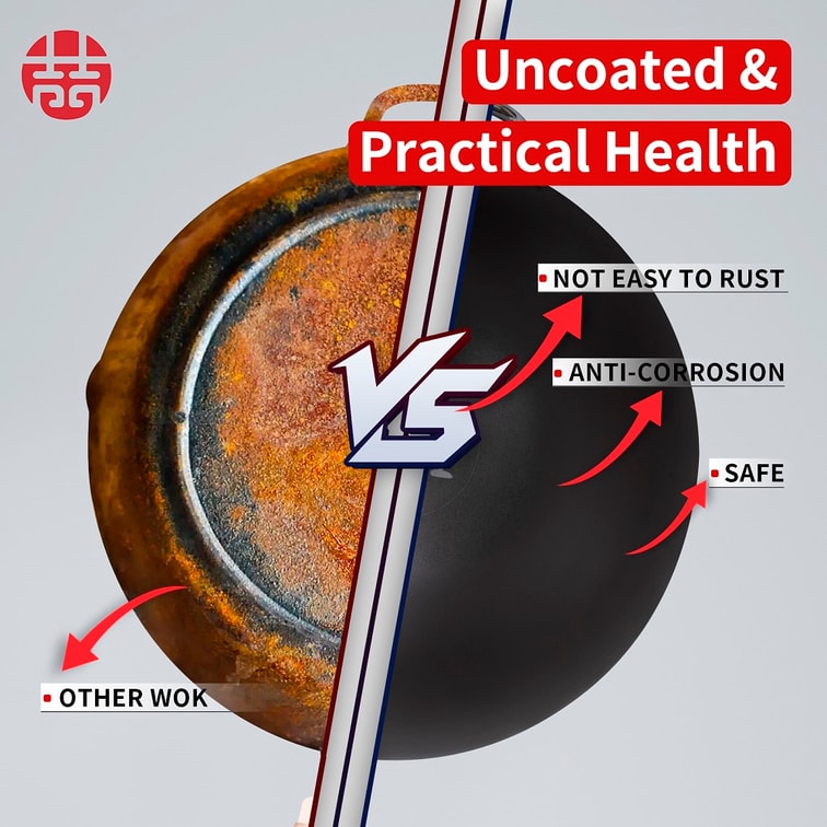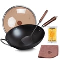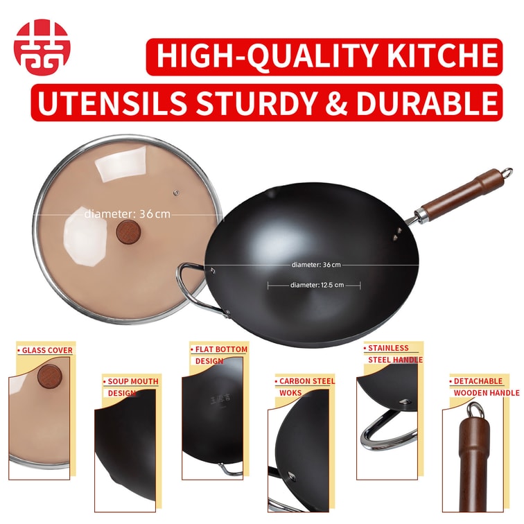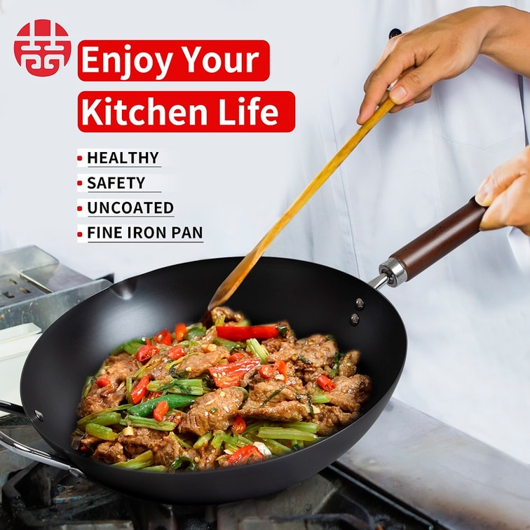 ⭐入門款⭐【爆炒鐵鍋+鍋鏟】中國 王源吉 中餐炒菜鐵鍋 + 炒菜鐵鏟 櫸木長柄 無塗層炒鍋 6-8人餐 不挑爐灶 36cm