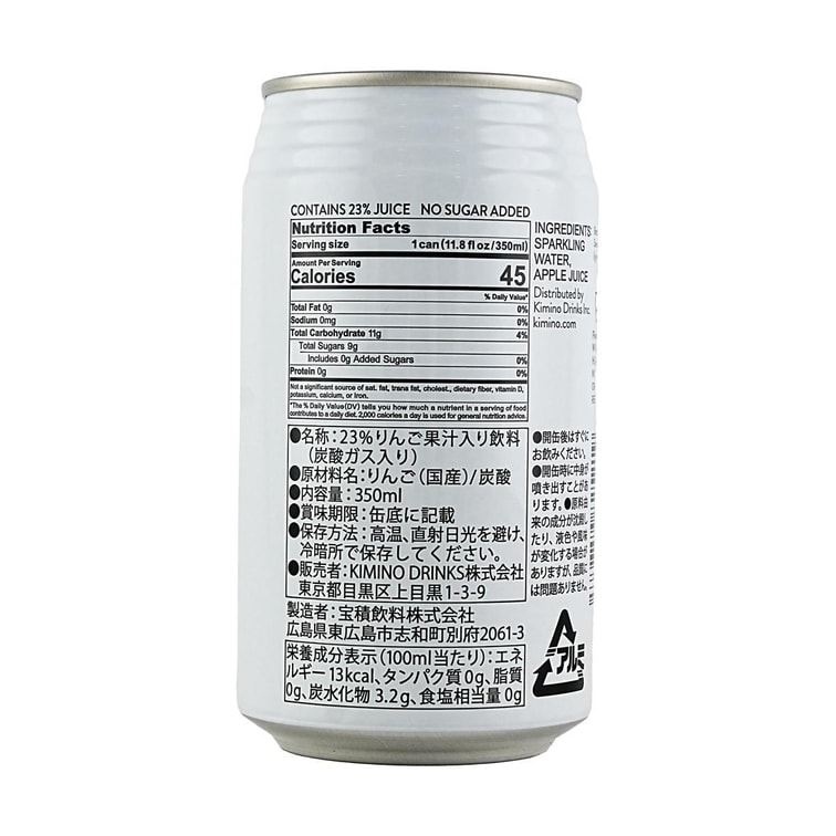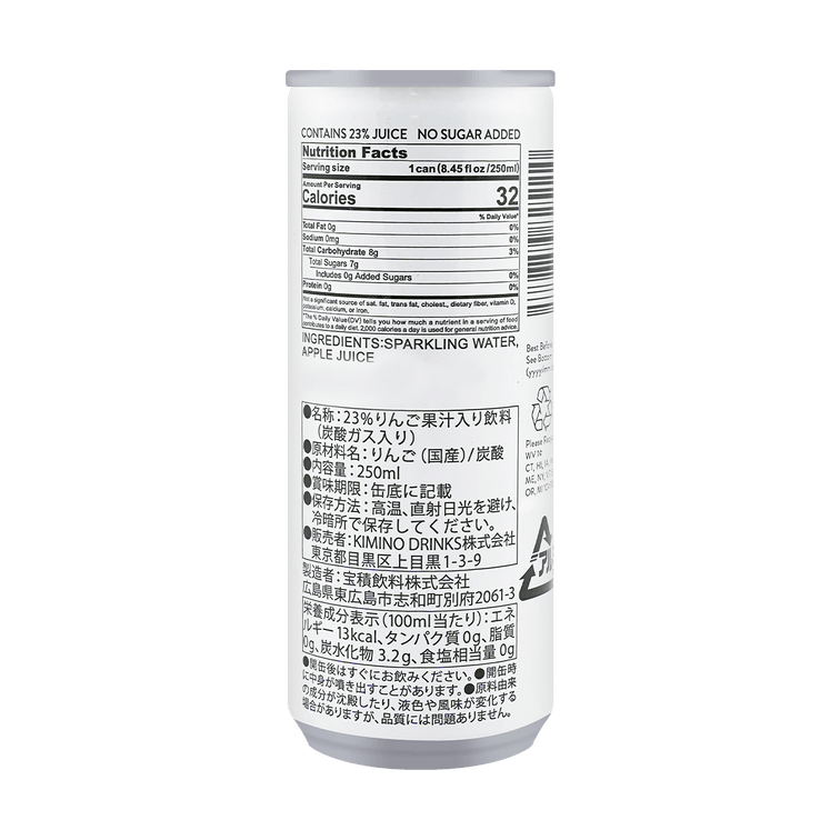 【零糖零脂低卡】日本KIMINO 蘋果氣泡水 果汁24%添加 250ml