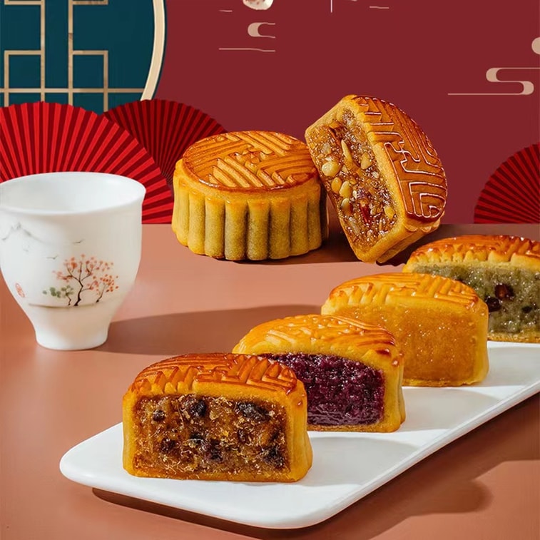 姚記 中秋四口味廣式80克經典口味大月餅伴手禮 魯香栗 陳皮豆沙 醇香五仁 金絲棗泥 320克