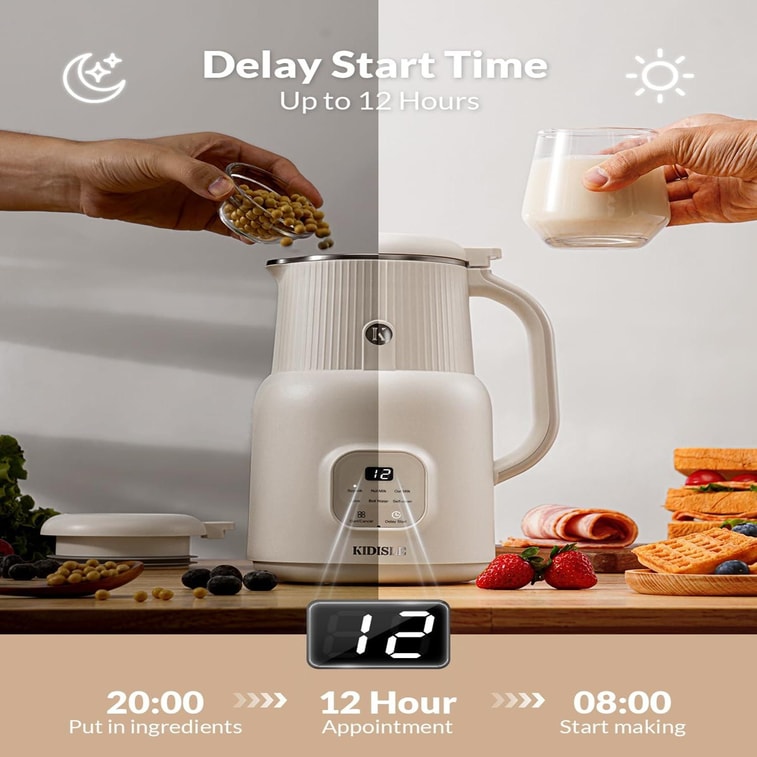 【2-Hour Keep Warm Function】- Enjoy ultimate convenience with our nut milk maker's 2-hour keep warm feature. Perfect for leisurely breakfasts, hosting brunches, or ensuring your beverage is ready when you are, this function keeps your milk at the ideal temperature, so you can savor them fresh and warm anytime.