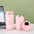 【中國直郵】物生物 智慧顯示溫度咖啡杯304不鏽鋼水杯 粉紅色 510ml