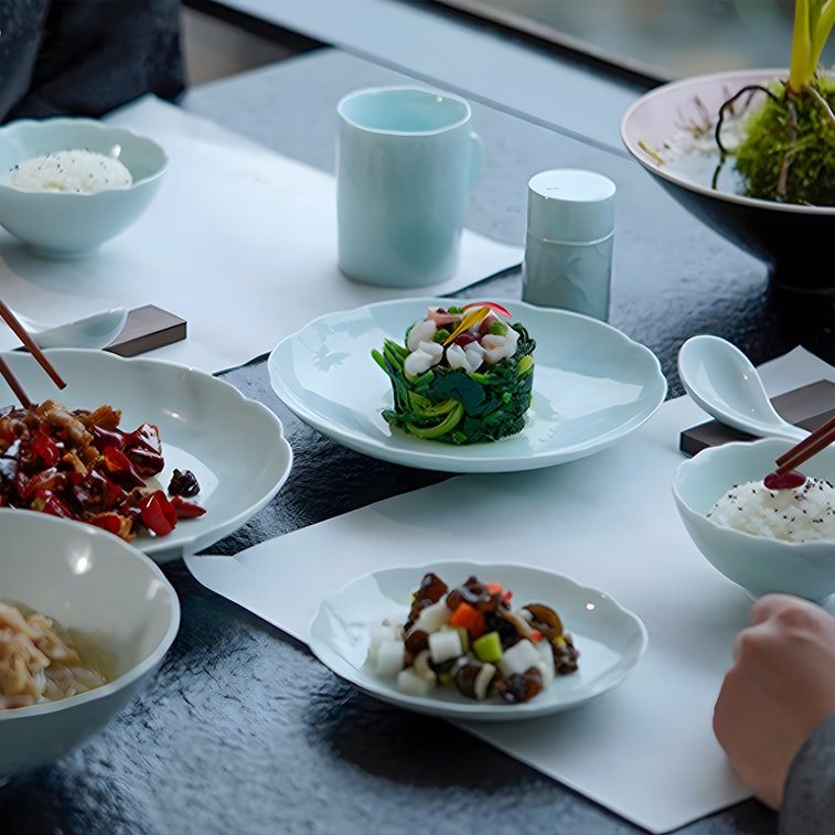 藍印東方 國色天香 景德鎮陶瓷餐具碗盤 八頭禮品組 4.5"飯碗*4+8"淺盤*2+8"深盤*2【高級餐具】