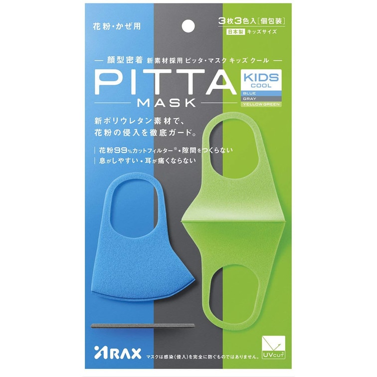 PITTA KIDS MASK Washable Anti-Allergen Dust Repellent Face Mask Blue Gray Yellow Green 3pcs