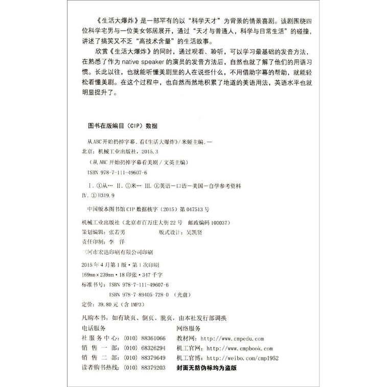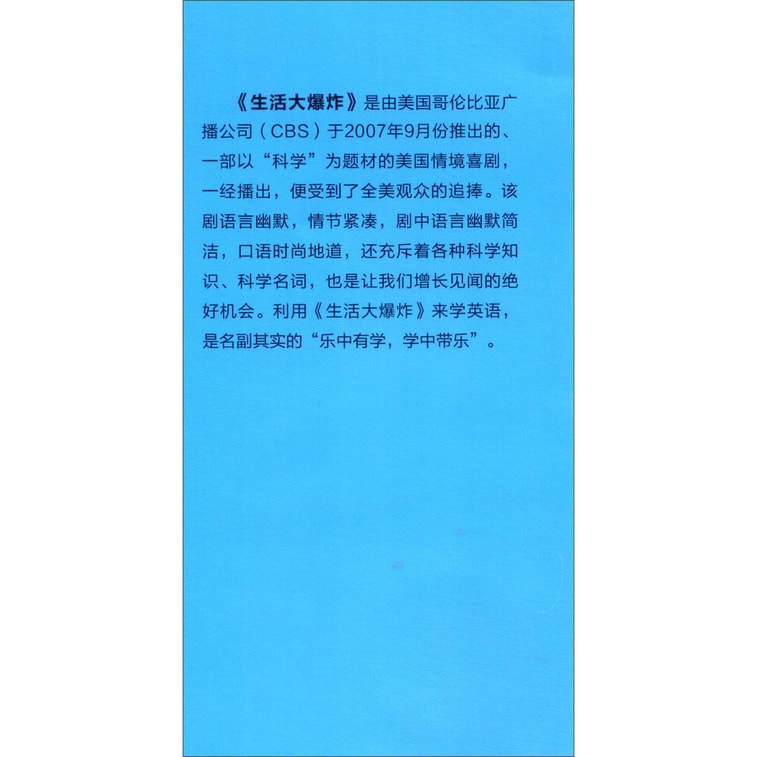 北京外语广播英语教学节目《英语PK台》广播推荐美剧学习教材;零起点学纯正口语,不会英语也可以看懂美剧;最地道最权威的口语书;帮你归纳最地道、最新、最时髦的口语句子,帮你总结最常用的短语,帮你矫正发音直至最纯正,让你语出惊人;学习最地道的口语同时又可以欣赏《生活大爆炸》,让你轻松趣味学;