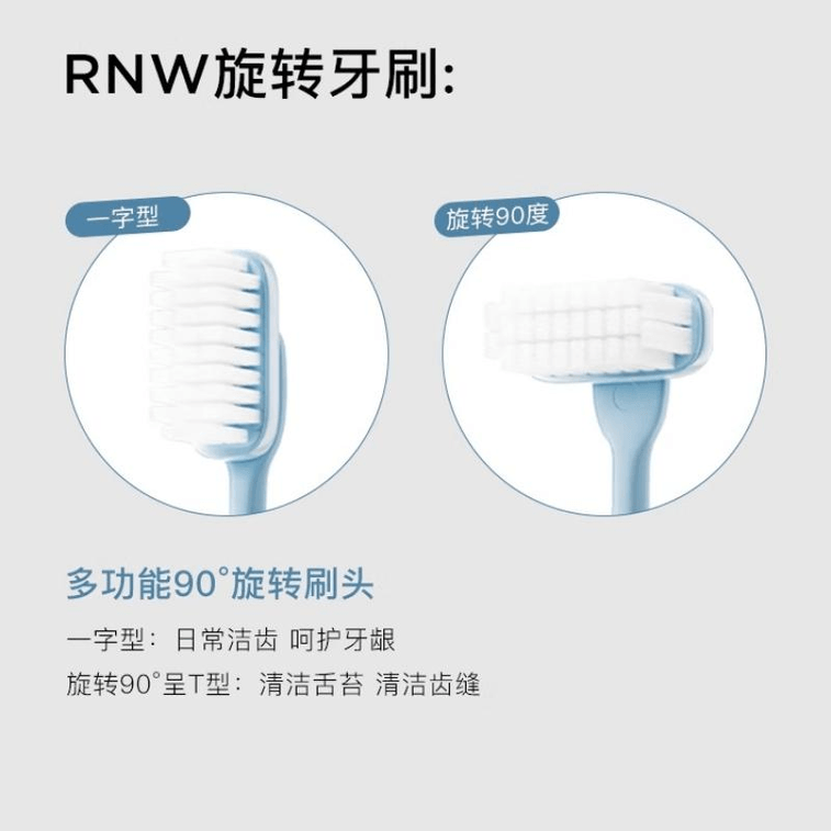 【中國直郵】RNW 牙刷軟毛護髮寬頭牙刷成人超軟藍色旋轉款11cm*1個