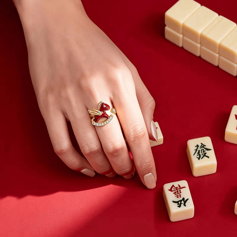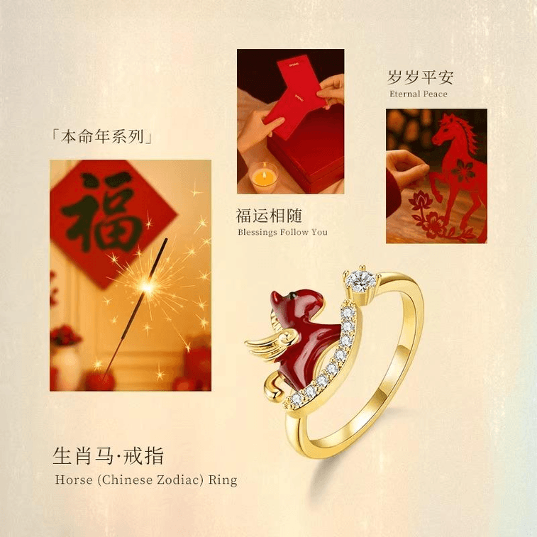 【中國直郵】 安康優品 阿吉豆 戒指女生肖馬本命年招財戒指新年紅指環素圈輕奢尾戒 內直徑1.7cm