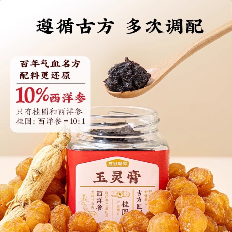 【中國直郵】 五穀磨坊 西洋參玉靈膏220g*2罐/盒 雙補蒸桂圓龍眼補氣血即食