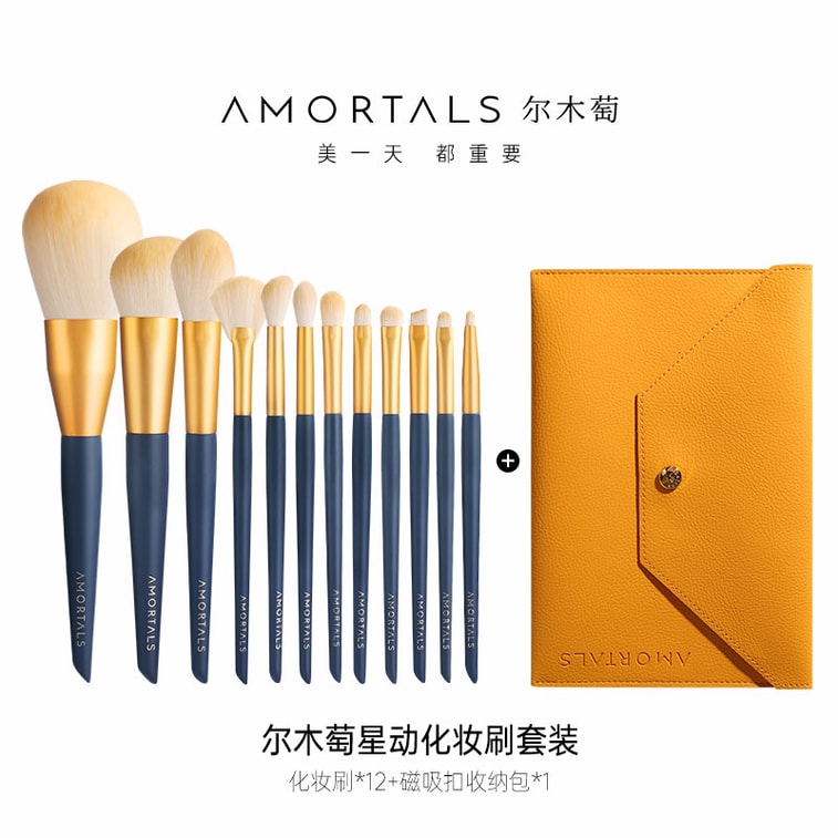 【中國直郵】 爾木 星動化妝刷+化妝包套裝 12支裝 眼影腮紅散粉修容刷妝套裝初學者全套工具 | 亞米