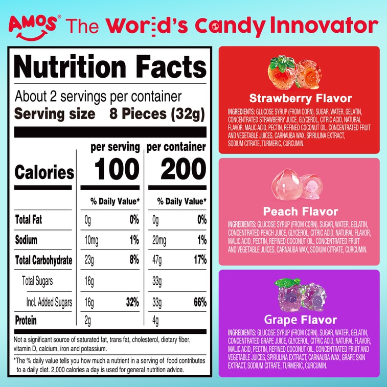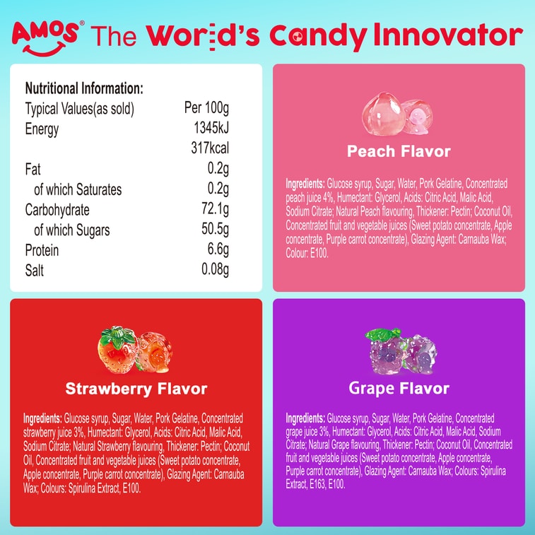 阿麥斯 獲2023美國糖果美味大獎4d爆漿爆汁水果果汁夾心軟糖65g 創意網紅零食橡皮糖QQ糖果 2.29Oz Per Bag
