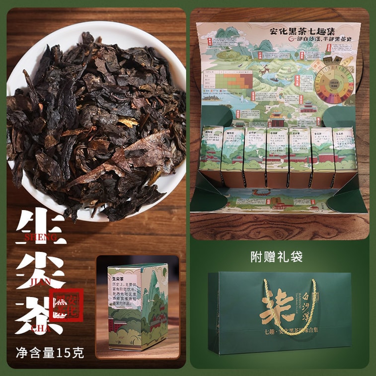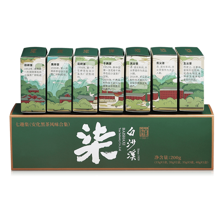白沙溪 【美國現貨秒發】 安化黑茶風味品鑑禮盒 匠心品質 一次品嚐全品類七種安化黑茶 七趣集 驅寒溫潤 養胃消食 新年送禮 附贈風味手冊 黑茶入門必選 200克