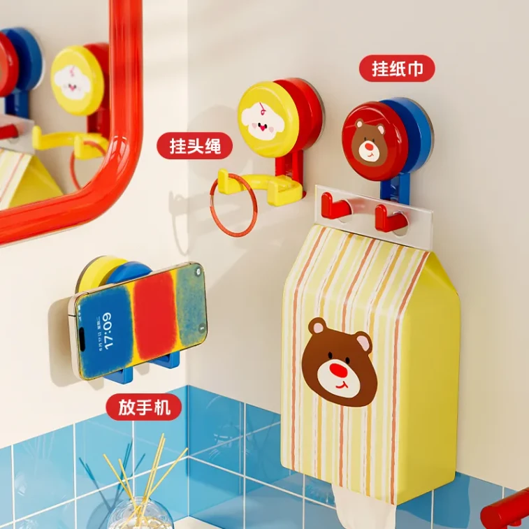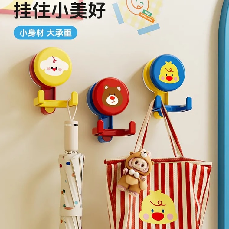 Animal suction cup hooks, no drilling required, strong load-bearing, dopamine double-headed adhesive hooks, red, blue, yellow, set of 3