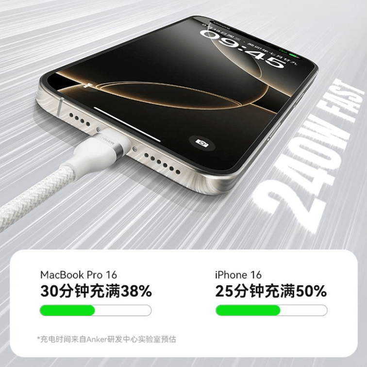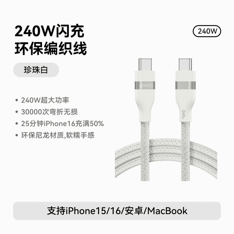 【中國直郵】安克 240W閃充數據線雙typeC尼龍編織PD快充環保材質線適用iPhone16-15/iPad/Mac/安卓 白1.8m*1件