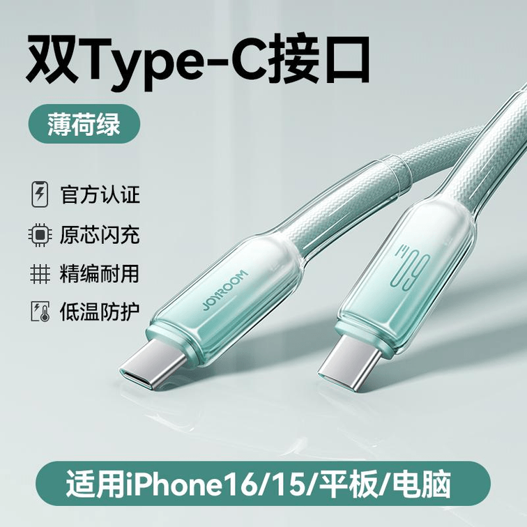【中國直郵】蘋果16充電線iPhone15promax充電器線usbc雙typec數據線pd45w快充ctoc手機平板筆記本ipad 薄荷綠*1件
