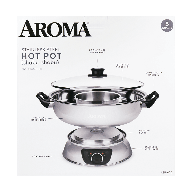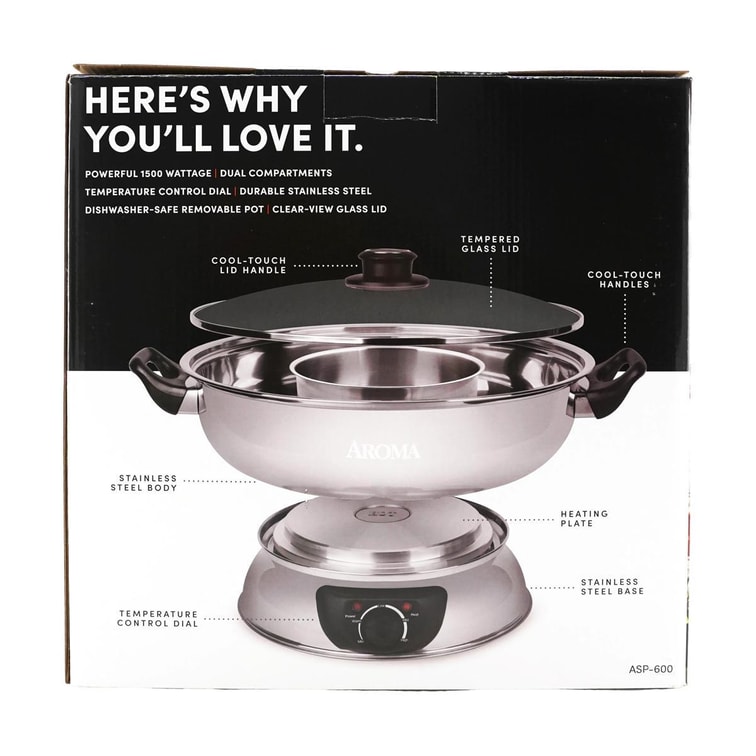 The ASP-600 comes with adjustable heating base, dual-bowl cooking pot, and steam vent lid for perfect hotpot every time.