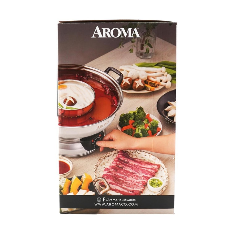 美國AROMA 不銹鋼分離家用鴛鴦電火鍋 5QT ASP-600 2年製造商保固 內外圈分體 聖誕節新年情人節七夕父親節母親節禮物【全美超低價】
