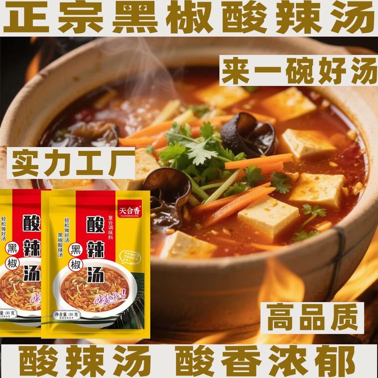 【中國直郵】 健康其他 正宗黑椒酸辣湯料 胡辣湯 2袋 60g 家用料黑胡椒速食湯酸辣調味料袋裝湯料包