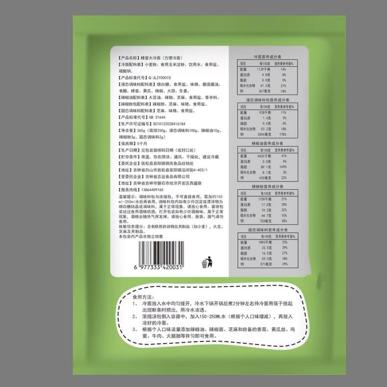 【中國直郵】 村驢家 朝鮮風味蜂蜜大冷麵 365g 速食冷麵米線袋裝帶調味料【東北延吉地道口感】