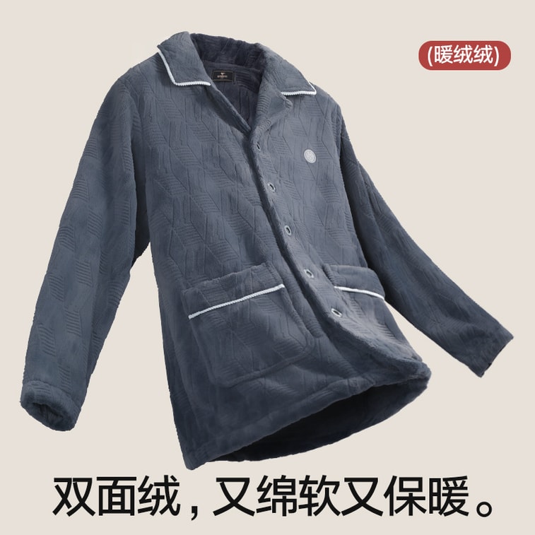 【中國直郵】 七匹狼 秋冬法蘭絨加絨加厚家居服可外穿睡衣睡褲套裝 煙灰色 L/170