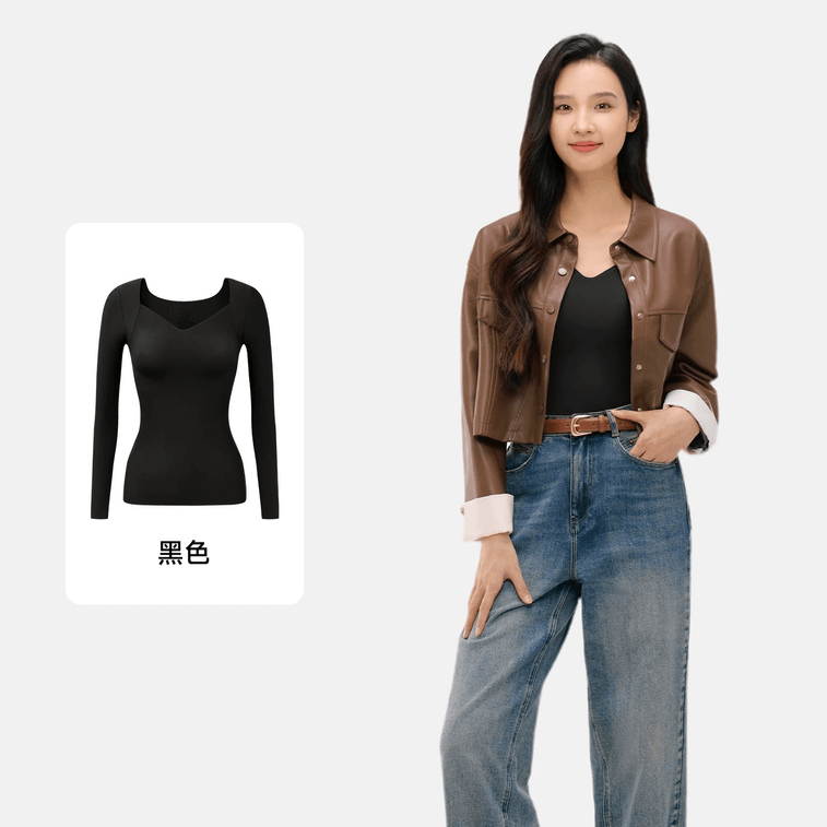 【中國直郵】 草本初色 秋冬打底衫 保暖衣 肌肉底衣 黑色長袖 XL碼【超模奚夢瑤同款】
