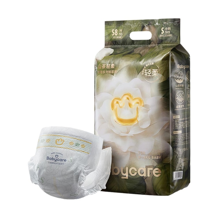 BC BABYCARE 尿不濕 S碼-58片/包 山茶輕柔嬰兒紙尿褲 腰貼型紙尿褲 適用月齡1-3個月 4-8kg