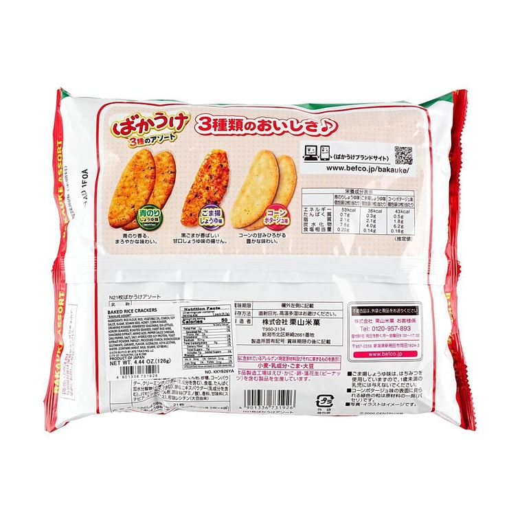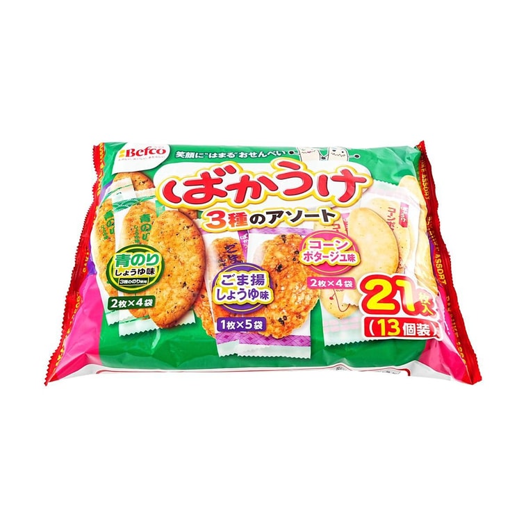日本BEFCO栗山米果 什錦仙貝米果 海苔醬油口味+芝麻醬油口味+玉米濃湯口味 21枚入 126g