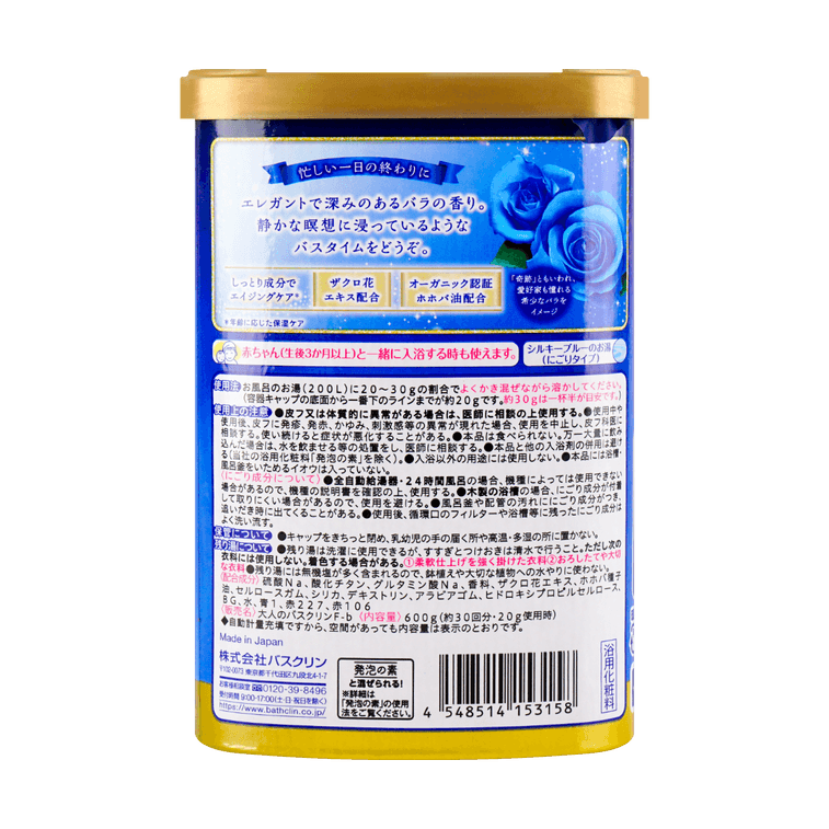 日本BATHCLIN巴斯克林 浴鹽 泡澡SPA 入浴劑 神秘藍玫瑰香 600g 大罐超值裝