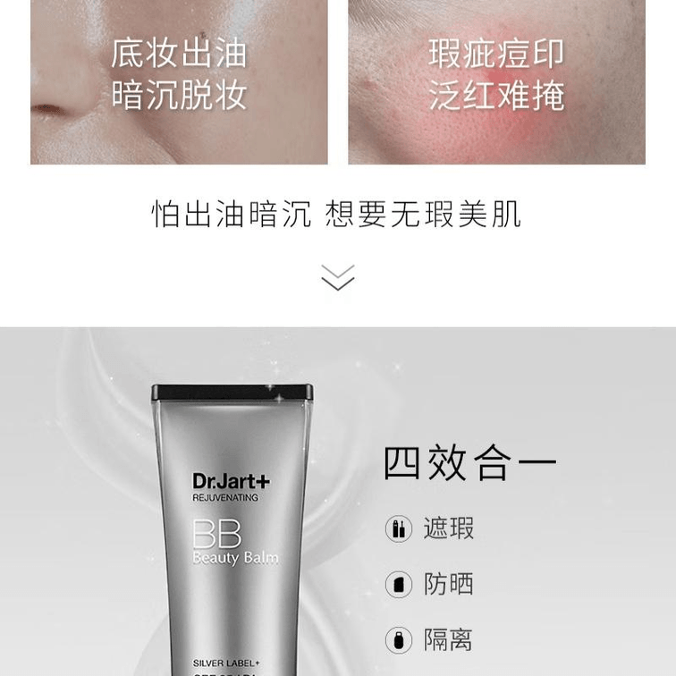 【中國直郵】 韓國 Dr.Jart+ +蒂佳婷 + + + 銀管BB霜 SPF50+遮瑕防曬隔離裸妝隱形毛孔 40ml*1個