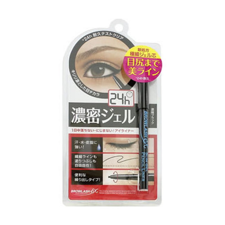 BCL BROWLASH EX Slim Gel Pencil Dense Black is waterproof and lasts for 24 hours. The tip of the pencil is soft, has strong ashesion, makes it easy to draw on skin. Contains ingredients that helps to moisturize eye area. Color is extremely dark and black, can be use to draw smoky eye.