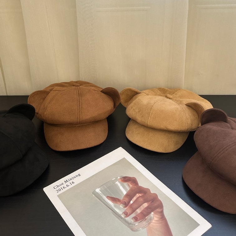 FOXTAIL FOXTAIL 小熊耳朵麂皮貝雷帽 氣質 休閒 百搭 春秋冬 寬簷 防曬 保暖 防風 遮陽 1個 | 亞米