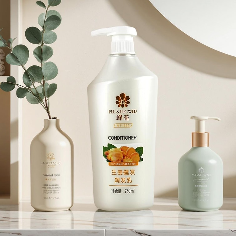 蜂花BEE&FLOWER 生薑健髮潤髮乳 無矽油生薑啤酒花維E護髮素 750ml 絲滑保濕 強韌順滑 乾枯受損 毛躁打結 暗啞無光
