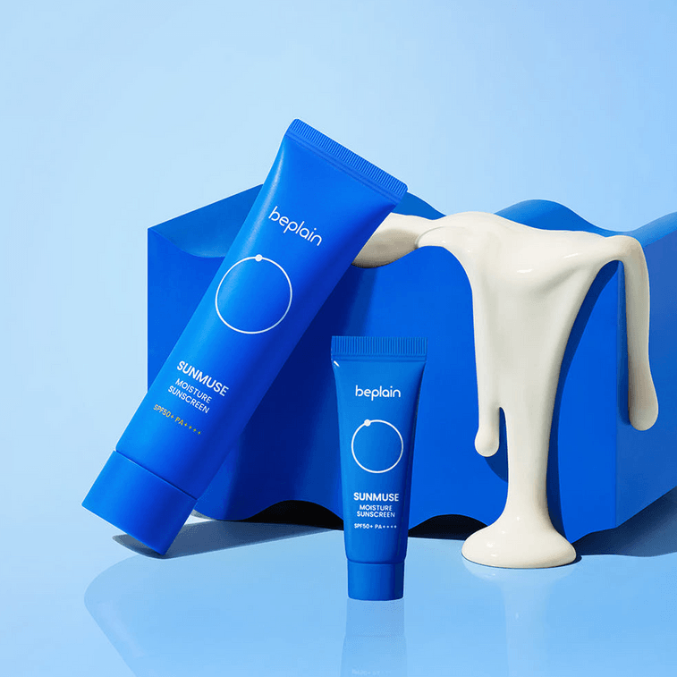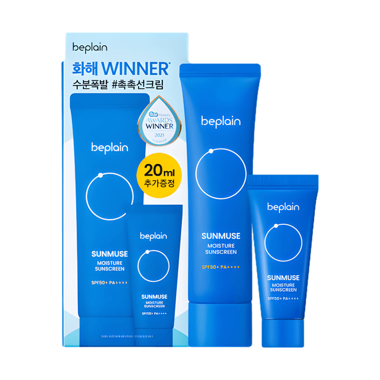 韓國BEPLAIN碧菲音 海洋水潤防曬乳 SPF50+·PA++++ 去除乾燥感藍色有機防曬 50ml+20ml 保濕炸彈 溫和舒適清爽 敏感肌膚 抵禦口罩摩擦