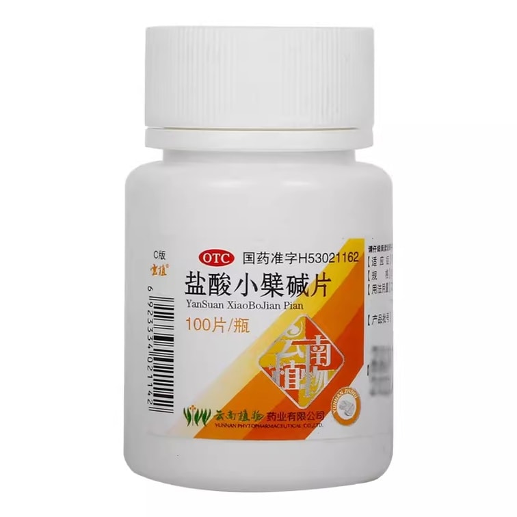 【中國直郵】 雲植 鹽酸小檁鹼片 適用於腸道感染胃腸炎腸胃炎0.1g*100片/瓶