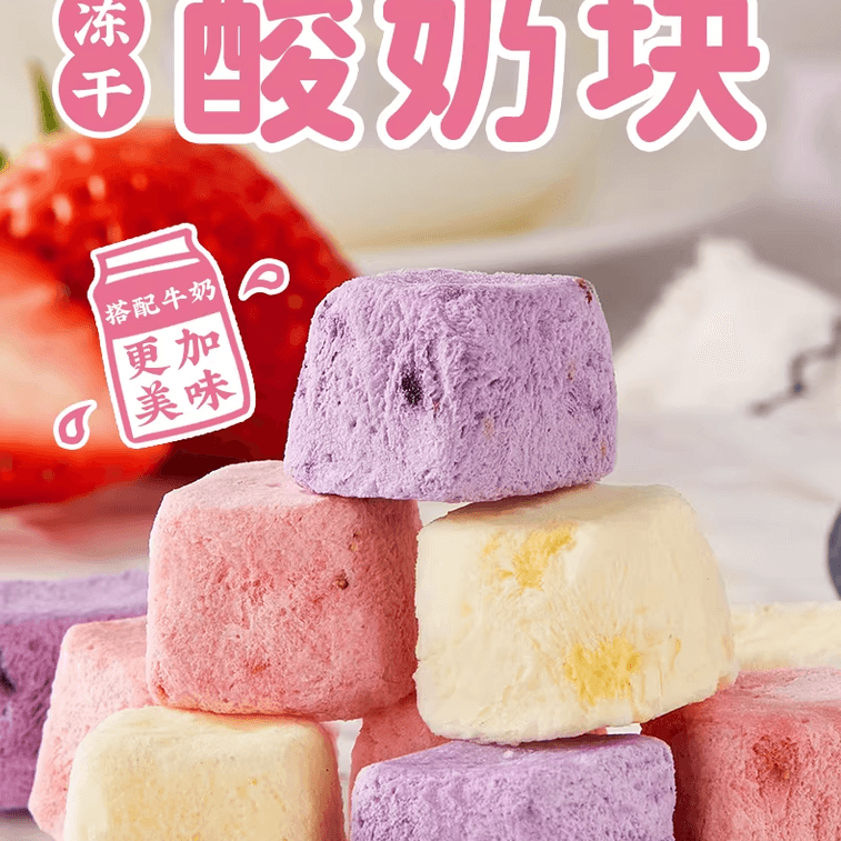 比比贊 比比贊 凍乾優格塊網紅水果乾辦公室藍莓草莓小點心點心的休閒食品100g*1袋 | 亞米